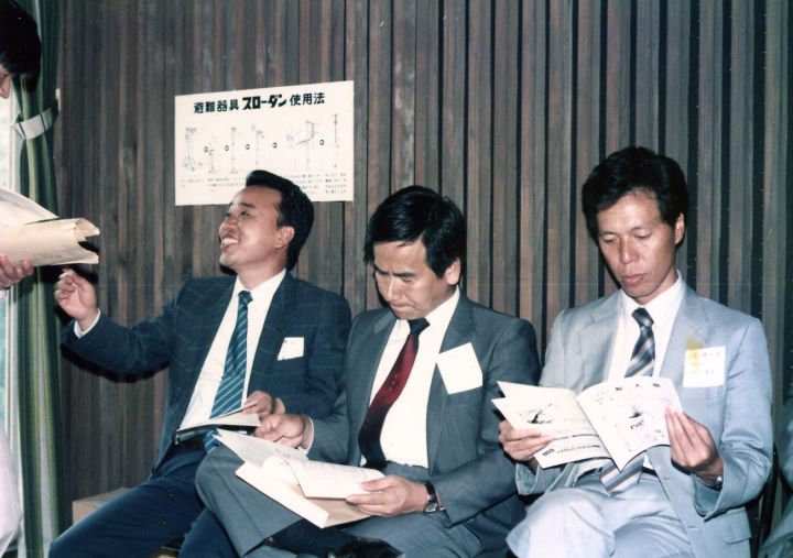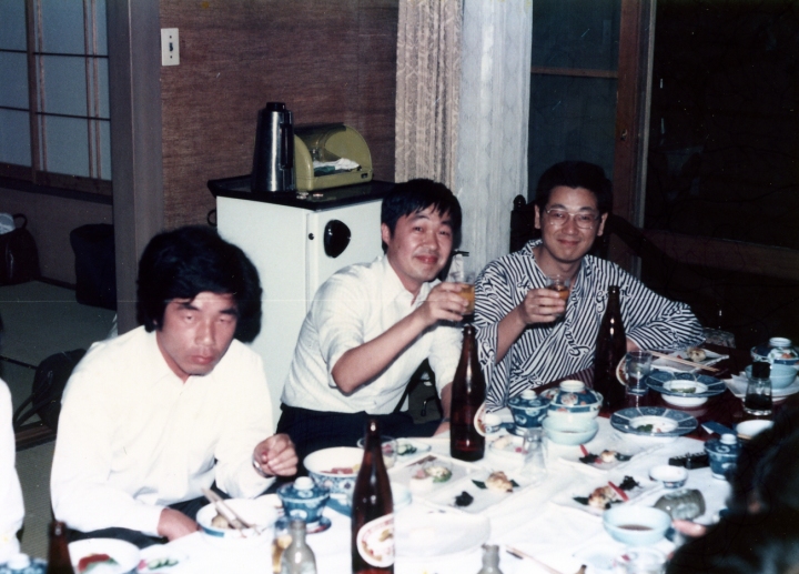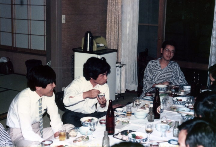 日時:1986年6月7日 記念式典 場所: 山梨大学工業会館にて 電子科25周年記念式典 6Dクラス会 湯村のホテル 幹事:山本 6D参加者:遠藤、上田智洋、上田一彦、粕谷(矢崎)、御園(河西)、笠井、岡本、則岡、和田、西山、神谷、水戸、 山内、小林、佐藤澄夫、小野、佐藤克昌、長縄、山本 以下の写真をクリックすると拡大します