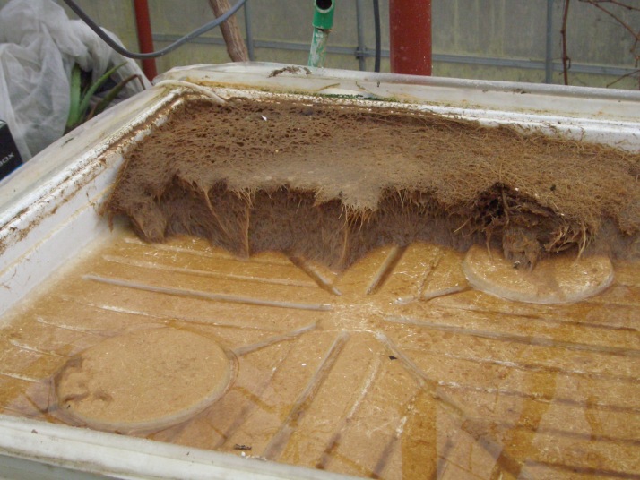 水耕栽培のトマトの根 | トマトの苗 | 5段式育苗 | 西山 | 武田神社 |