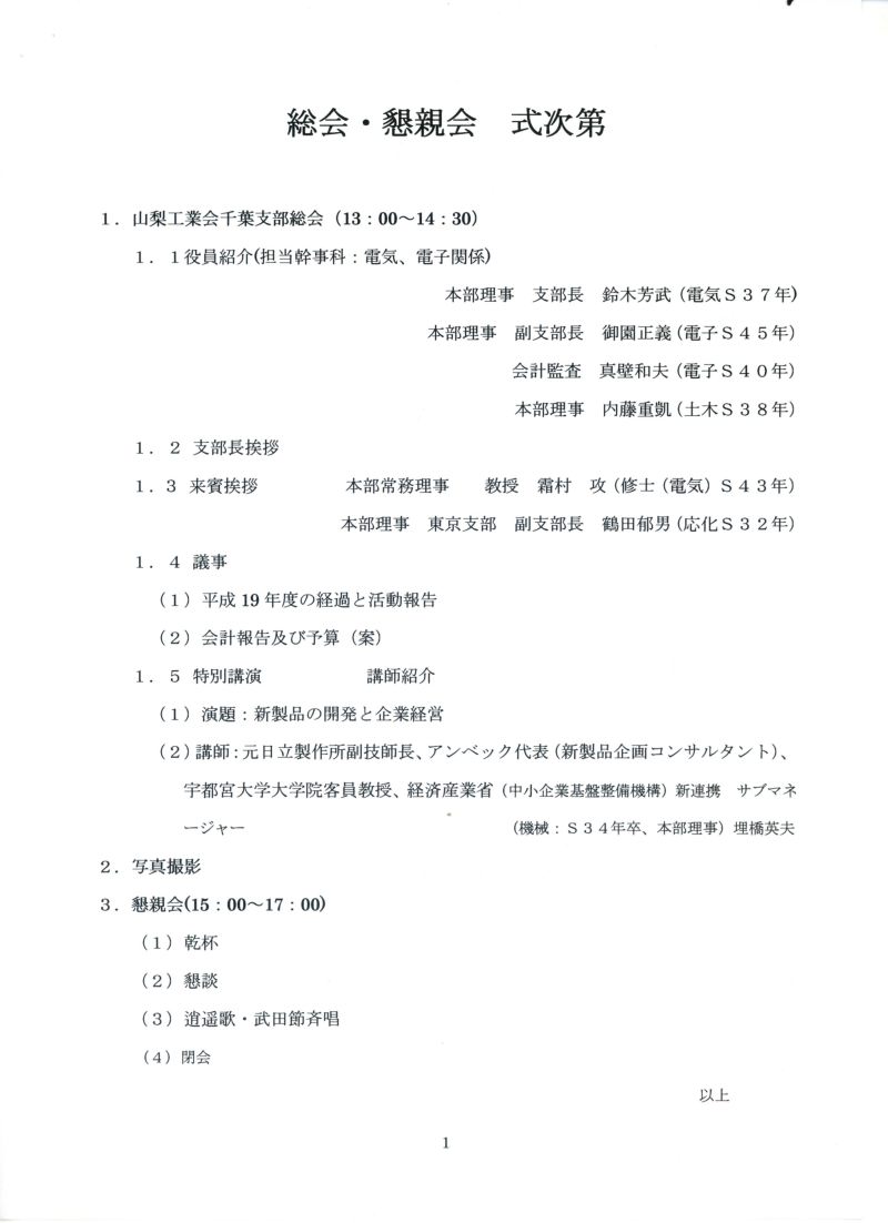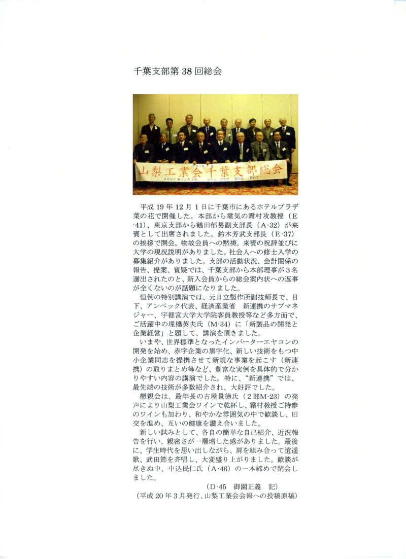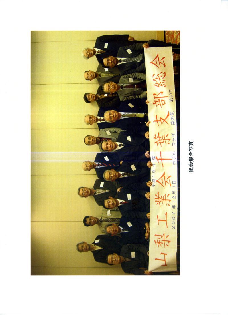 2007年12月1日 山梨工業会千葉支部総会スナップ 6D参加者:御園、久本、山本 山梨工業会千葉支部総会でに久本と参加しました。 写真をクリックすると拡大します。もとに戻るにはブラウザの「戻る」を使ってください。