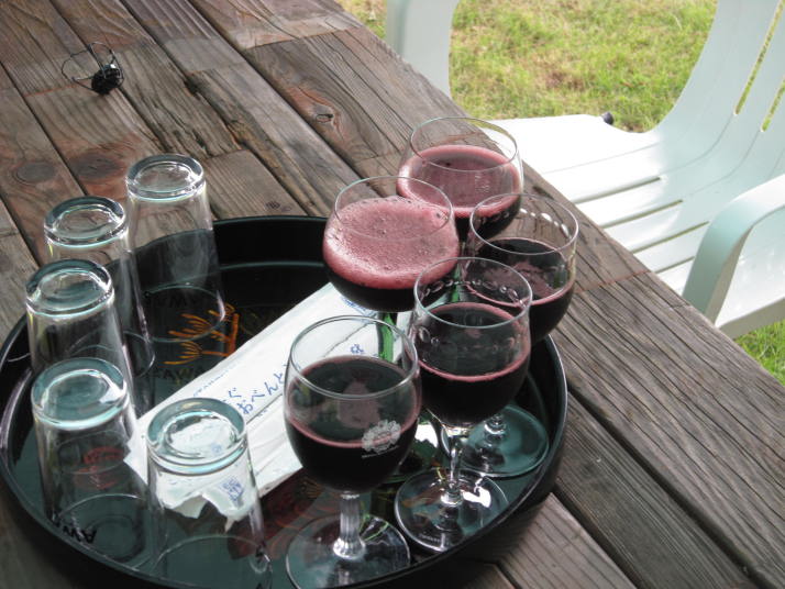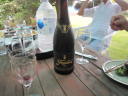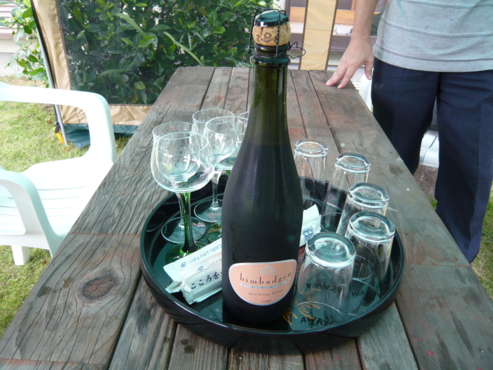 まずスパークリングワイン(赤)の乾杯でスタート。つづいて白の通常のスパークリングワインを開けて。