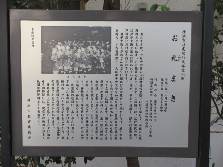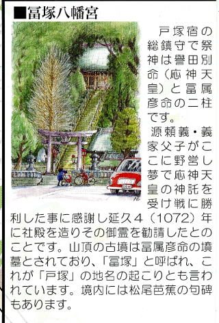 ・・・5.高松寺11:35・・・澤邊本陣・羽黒神社11:50・・・・6.海蔵院11:53・・・・7.八坂神社12:00・・・・8.冨塚八幡宮12:07(戸塚の地名の由来)・・・