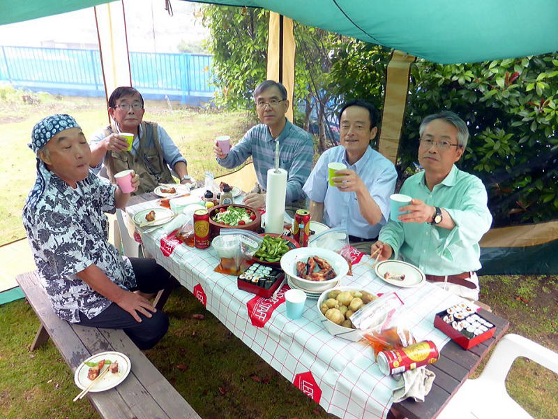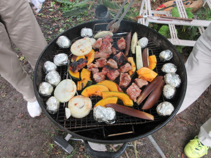 ・山本はスルランカから朝8:00成田帰国、家に荷物を置いて、駆け付けましたが12:45頃到着で、準備無し、即BBQと乾杯。