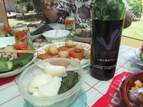 ・望月さん持参の赤白梨大ワインも、恒例の大テントの中で、心地良い風に吹かれながら、美味しくいただきました。