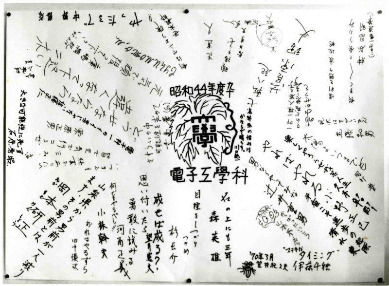 昭和45年3月 卒業式の後の謝恩会での寄せ書き![]()