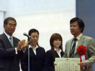 2006年10月19日、革新的な技術及び製品開発に挑む 創業・ベンチャー企業のもつ技術力を選ぶ 「東京都ベンチャー技術大賞」 の表彰式が東京ビッグサイトで開催されました。 112社の応募の内から9社が最終選考に残りました。 神谷社長率いるインターチップ鰍フ開発した集積回路技術が、 審査に適い、特別賞の栄誉に輝きました. |
