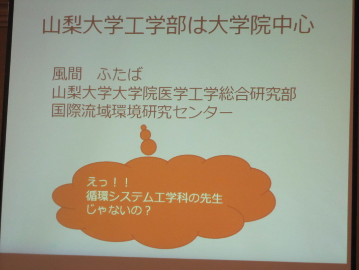 16:50〜17:10 本部報告 山梨工業会理事(山梨大学 国際流域環境研究センター) 教授 工学博士 風間 ふたば 氏(応化53)