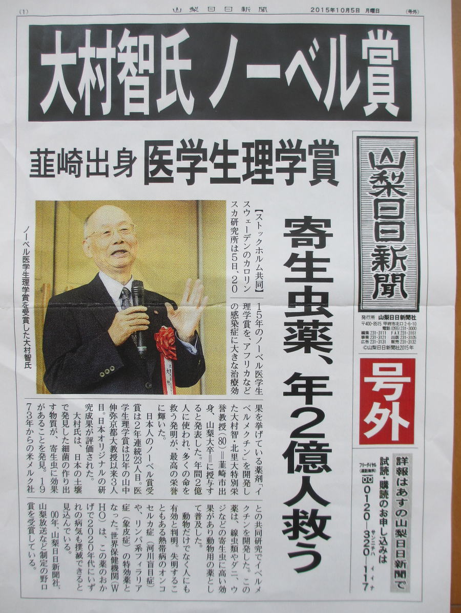 平成27年10月26日(月)、本学甲府キャンパスにおいて、ノーベル医学・生理学賞