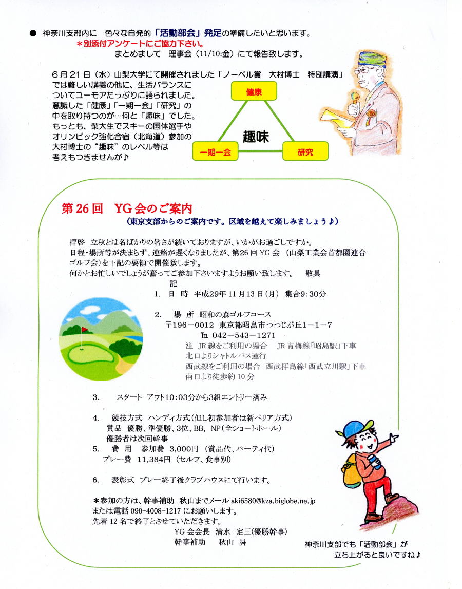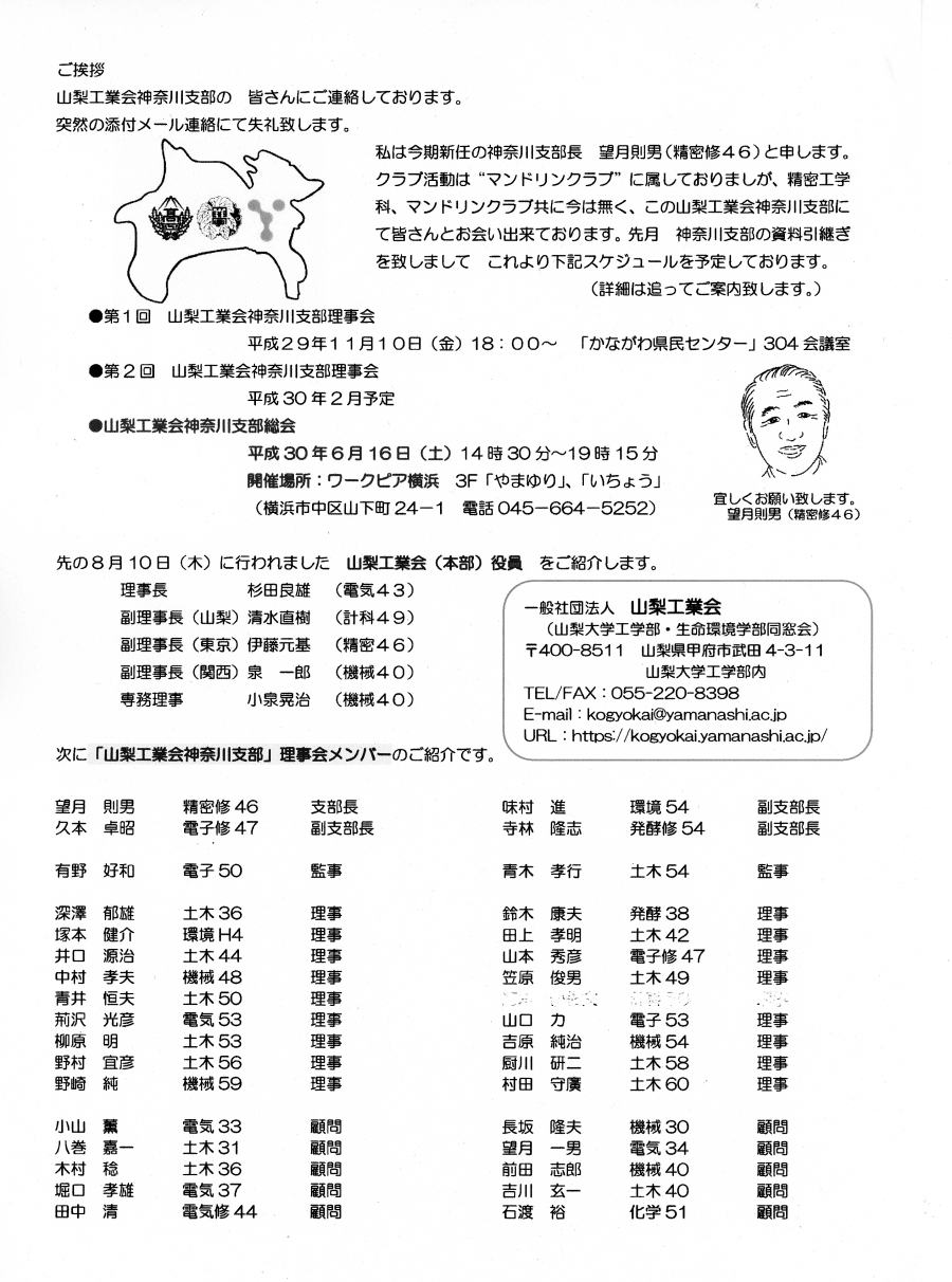 | 望月則男神奈川支部長(精密修46)からの 「ご挨拶」と「活動部会」アンケート 2017年9月13日 以下の内容のPDFファイル |