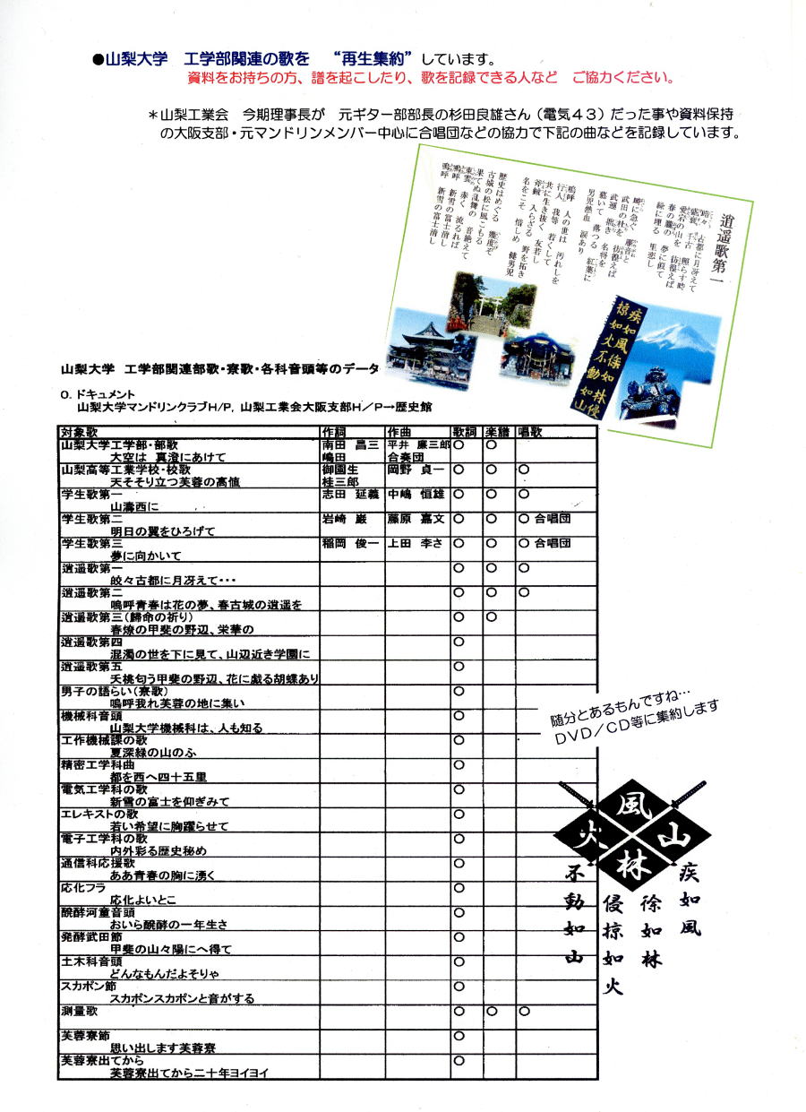 | 山梨工業会神奈川支部「活動部会」発足準備アンケート *情報は活動ブループ内でのみ使用し、その他の目的では一切用いません。 *該当項目の無い方、興味の無い方は 連絡や返信などは “不要”です。 *今後は 主にHPやグループごとにまとめてご案内致します。 ------------以下の内容をコピーし、ここをクリックしメールに貼り付け、返信してください----------------- お名前: 学部・卒業年( ・ ) メールアドレス: これまでに話題や打診のあった活動内容を下記に示します。 自由に項目の追加をお願い致します。 個人的に活動部会を立ち上げたい、加わりたい等 思いがありましたら ☑ or ■ 願います。 活動内容 リーダー的に参加できる 有れば参加したい 情報だけは入手したい □ 山登り・ハイキング □ □ □ □ 飲み会 □ □ □ □ 旅行・見学会 □ □ □ □ 合唱・コーラス □ □ □ □ マンドリン・ギター □ □ □ □ ゴルフ □ □ □ □ 水泳 □ □ □ □ 古文書解読 □ □ □ □ 写真 □ □ □ □ 軽音楽 □ □ □ □ 囲碁 □ □ □ □ 将棋 □ □ □ □ 絵画・スケッチ □ □ □ □ マラソン・駅伝 □ □ □ □ 手品 □ □ □ □ 筝曲 □ □ □ □ 太極拳 □ □ □ □ ( ) □ □ □ □ ( ) □ □ □ □ ( ) □ □ □ □ ( ) □ □ □ |