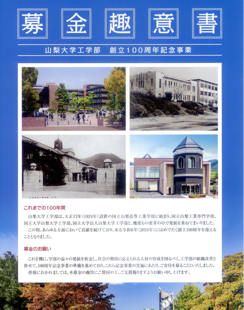 山梨大学 工学部中心のページ 2023年10月13日 工学部創立100周年記念事業募金掲載